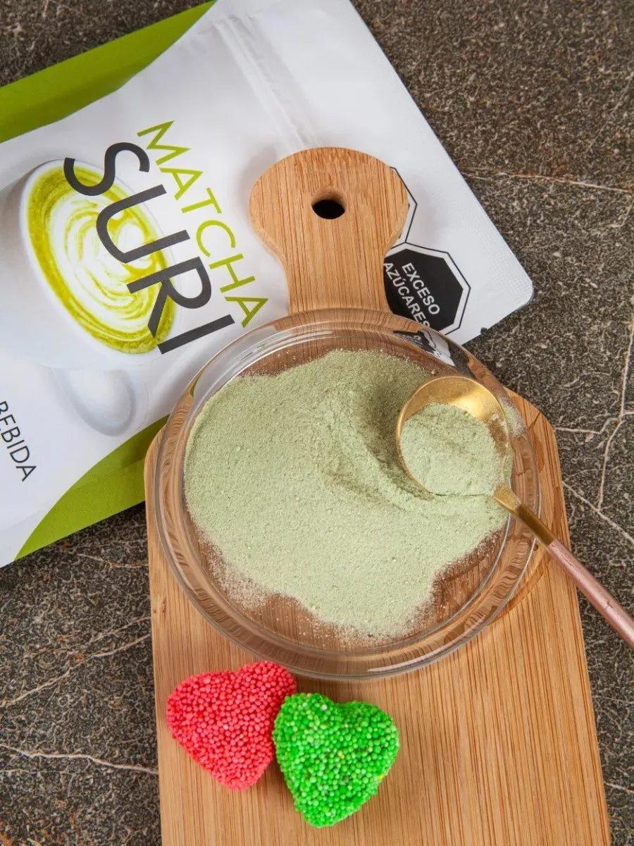- Se recomienda mezclar una cucharada de Matcha Suri en polvo en aproximadamente 200 ml de agua o tu bebida favorita.